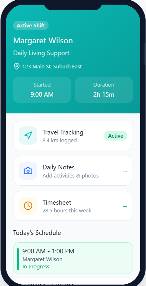We’re a small Australian team focused on creating a single, modern platform that brings workers, providers, and participants together. Every feature in DualCare — from logging shifts to managing rosters — is designed to reduce admin, prevent mistakes, and make the day-to-day smoother for everyone involved.